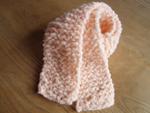 モールのような毛糸で編んだベビーピンクの可愛いマフラーです。おそろいの帽子もありますよ!